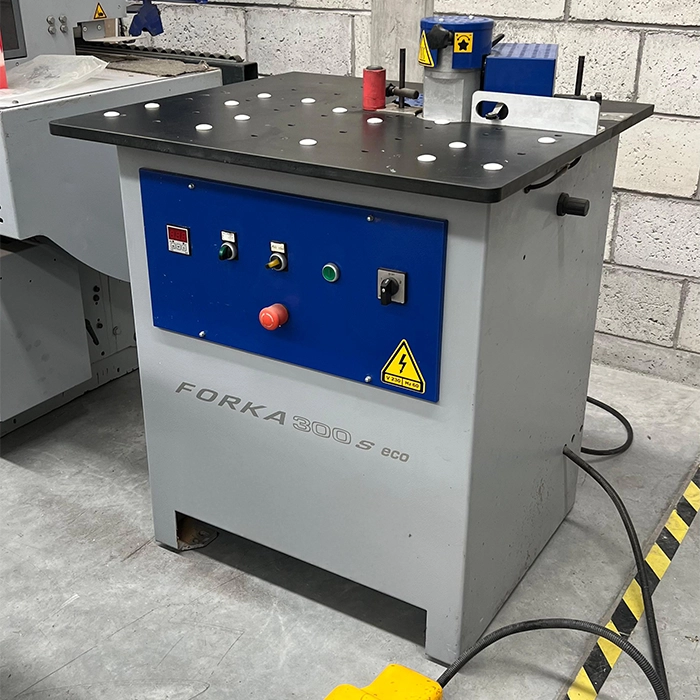 Enchapadora de cantos para uso general en carpintería. Permite trabajar distintos materiales con un proceso sencillo de aplicación y acabado.