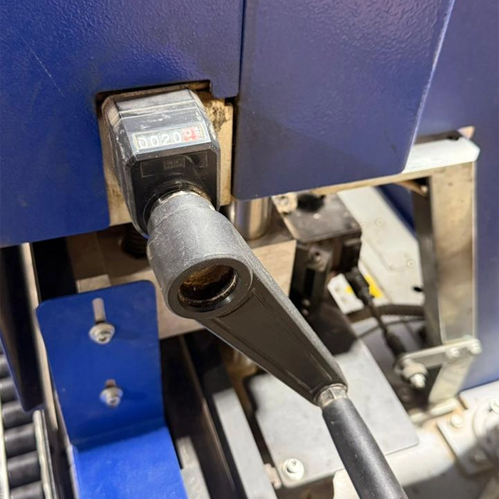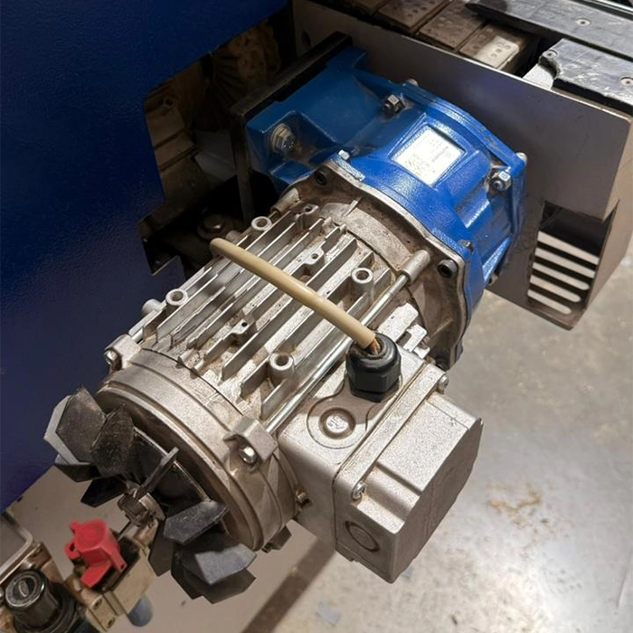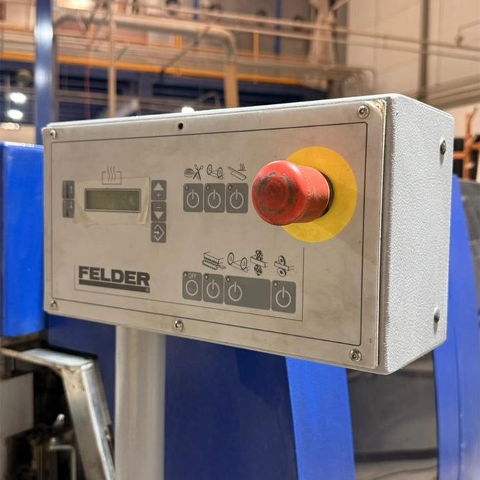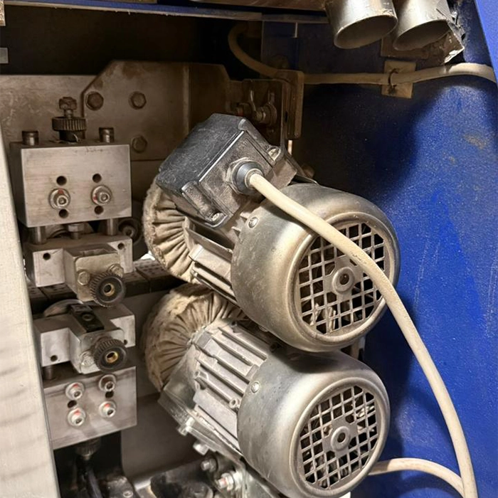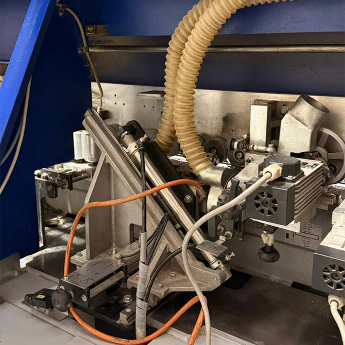 Enchapadora de cantos para trabajos de mayor volumen en carpintería. Permite un flujo continuo de piezas,