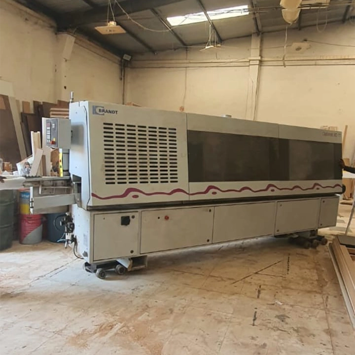 Máquina para enchapado de cantos con varias operaciones integradas como pegado, corte y perfilado